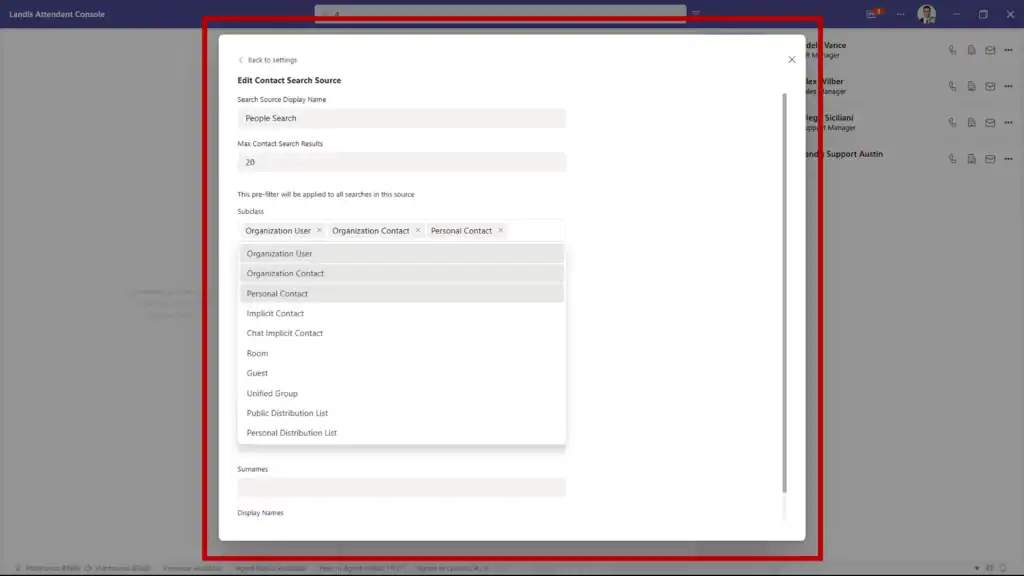 Configure which contact types appear in search results (e.g. internal users or external contacts), so you can reduce irrelevant results and locate the right contacts faster.