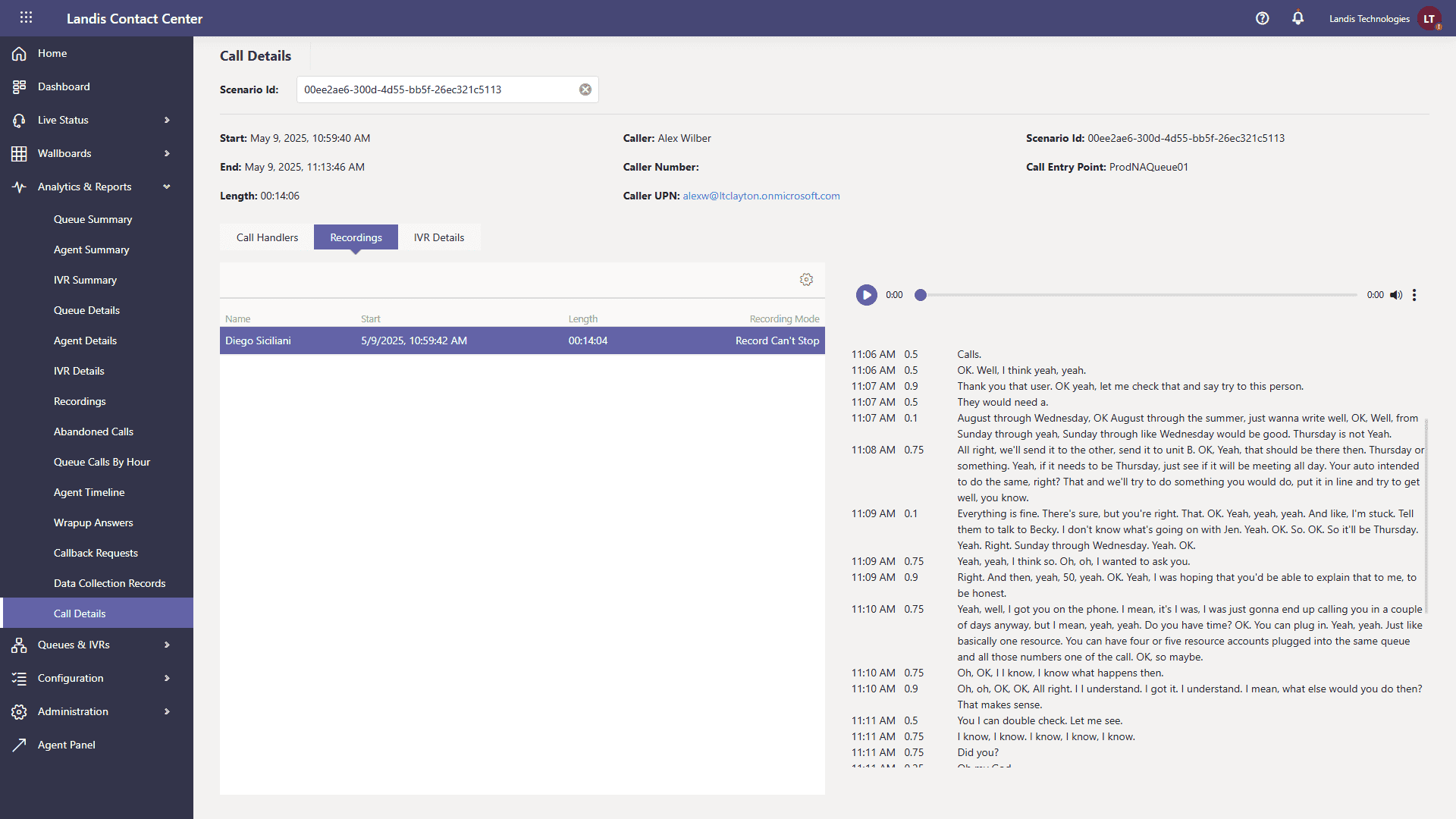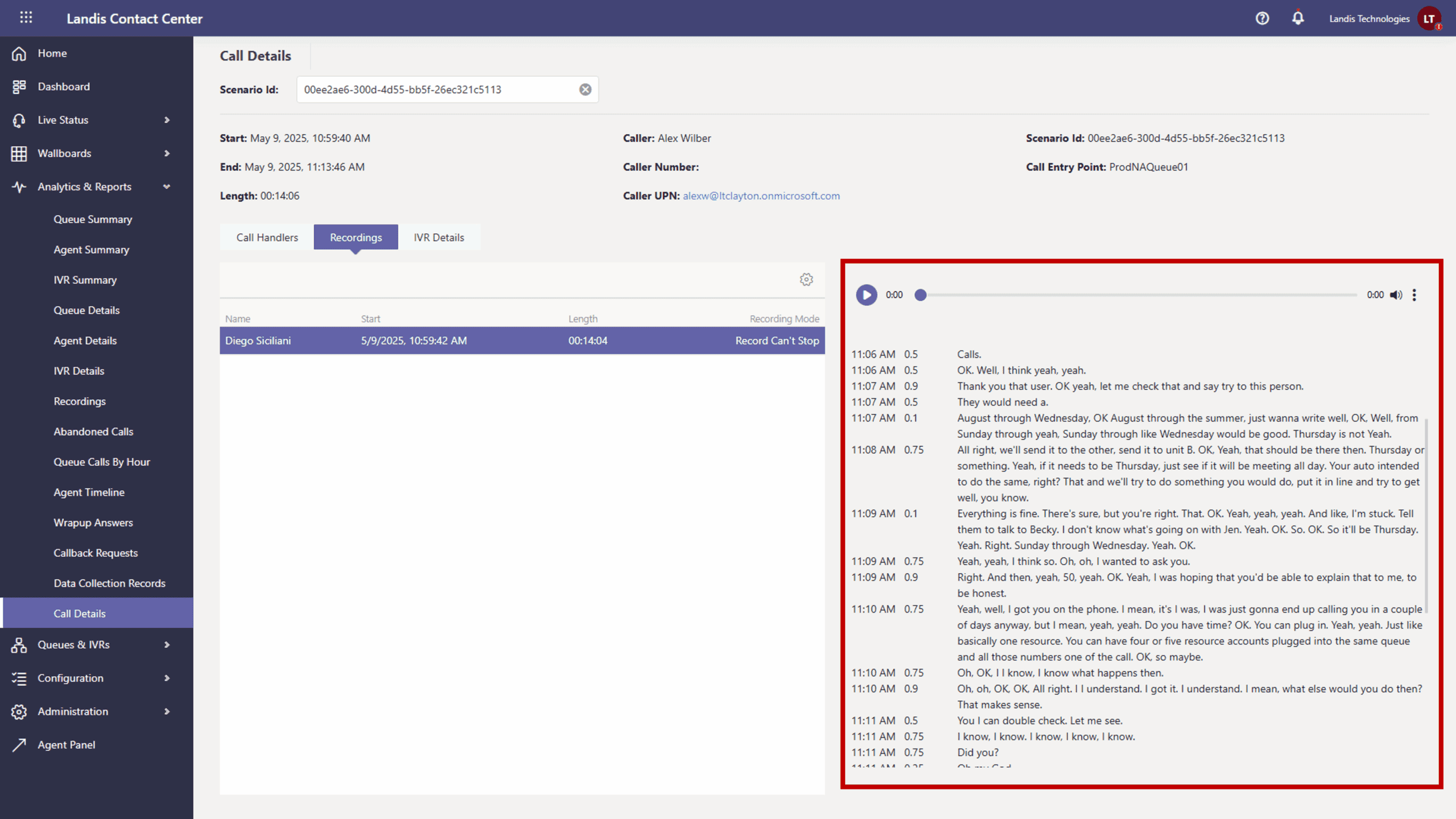 Call Recording through Landis Contact Center can be configured for both Landis Queue calls and Landis agents on direct calls, which enables training and quality assurance opportunities.