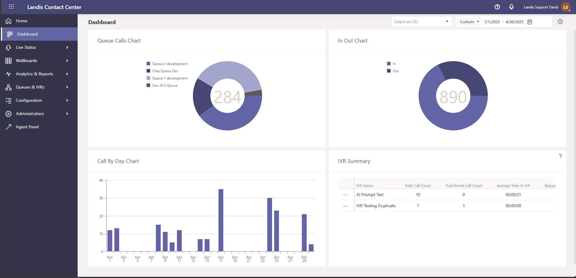 The Landis Contact Center admin portal is designed to look and operate like the Microsoft 365 Administrator portal to reduce the learning curve for admins.